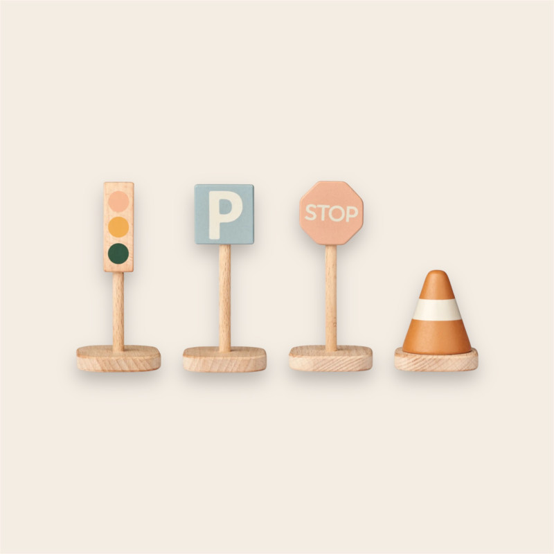 Le set de panneaux de signalisation en bois Liewood est parfait pour enrichir les jeux de voitures de votre enfant et stimuler son imagination ! Fabriqué en bois de hêtre naturel et en MDF, ce set inclut un panneau de stationnement, un cône de signalisation, un panneau stop et un feu de signalisation. Un excellent choix pour développer la dextérité et la créativité dès 3 ans.