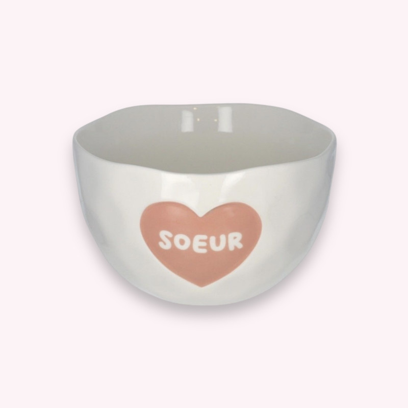 Que ce soit pour un anniversaire, un événement spécial ou simplement pour dire à votre sœur qu’elle compte pour vous, ce bol est le cadeau parfait. Le Petit Souk propose également d'autres modèles personnalisés avec des messages drôles et affectueux tels que "Frère", "Papa", "Chaton", ou encore des messages rigolos comme "Crotte de nez" ou "Quand te reverrai-je". Il y en a pour tous les goûts !