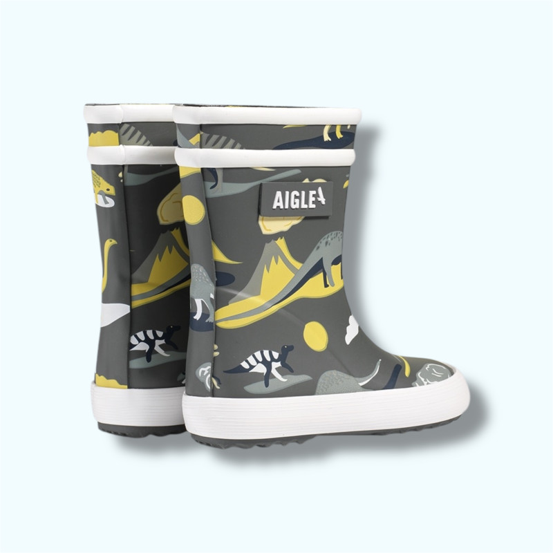 Les bottes Baby Flac en coloris Dino (taille 19) de Aigle sont l'incontournable des enfants prêts à sauter dans les flaques d'eau ! Ce modèle taille petit, il est donc recommandé de choisir une taille au-dessus de votre taille habituelle pour garantir un bon confort. Idéales pour la pluie, ces bottes emblématiques de la marque sont un allié indispensable pour garder les pieds de vos enfants au sec toute l'année, que ce soit en ville, à la mer ou à la campagne. Leur double bande blanche distinctive et leur bande réfléchissante sur le talon apportent à la fois sécurité et style.