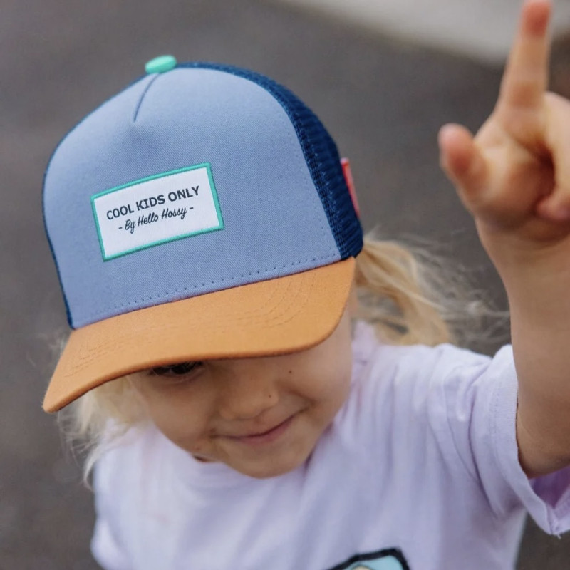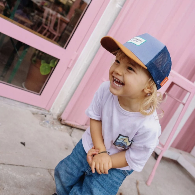 Avec son bleu profond et sa visière contrastée, la casquette enfant Mini Marine Hello Hossy évoque les vacances en bord de mer et les aventures marines. Un classique revisité pour les petits explorateurs au style affirmé.