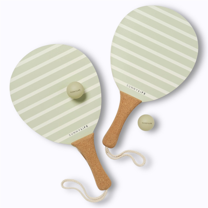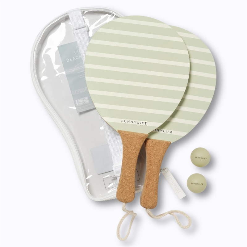 Les raquettes de padel vintage Sunnylife combinent style rétro et jeux de plage ou jardin dès 6 ans. Simples à prendre en main grâce à leur manche léger, elles permettent de jouer à deux parties sans installation complexe. Leur design La Palma vert pastel apporte une touche élégante aux sessions estivales.