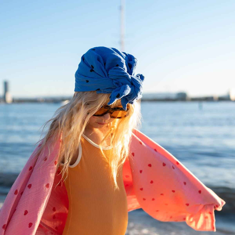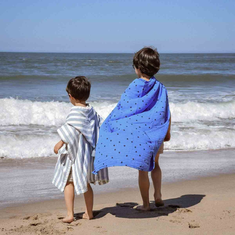 Avec ses dimensions généreuses de 110 x 110 cm, ce lange devient vite un allié au quotidien : couverture légère pour l’été, voile d’allaitement chic, tapis de change d’appoint… Son imprimé cœur Greek Blue lui donne une vraie touche mode, pile dans la tendance. Le coton est certifié OEKO-TEX pour prendre soin des peaux les plus sensibles.