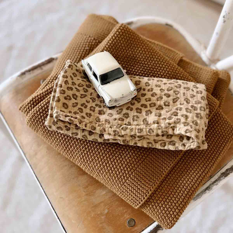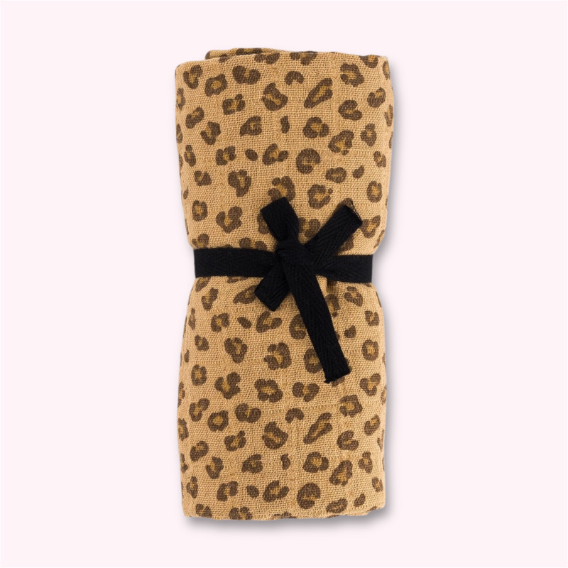 Le lange Bianca Mini Léopard Café de Rose in April allie douceur, style et praticité. En coton certifié OEKO-TEX, il est parfait pour tous les moments de la journée : allaitement, sieste, sortie ou câlin. Un indispensable du trousseau de naissance à la fois chic et utile. Dimensions 110x110 cm.