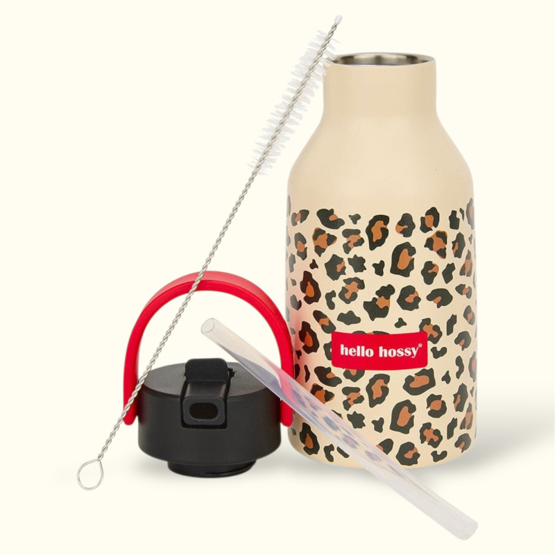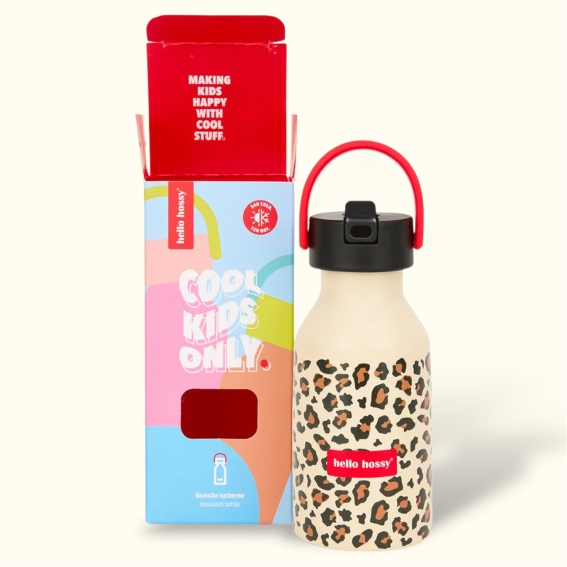 Fabriquée en acier inoxydable sans BPA, elle respecte la planète autant que les enfants. Pas de plastique à usage unique, pas de compromis sur le style. Le motif léopard plaît autant aux mini-tigres qu’aux parents sensibles à l’esthétique. Et comme toujours chez Hello Hossy, le design coloré fait mouche.