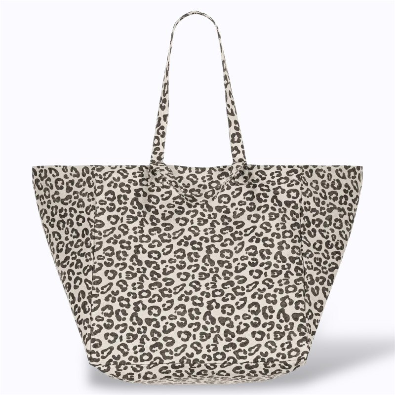 Un sac cabas graou qui coche toutes les cases : stylé, léger, pratique. Signé Rose In April, il est conçu en coton résistant avec un imprimé léopard greige chic et décalé. Idéal pour les mamans lookées comme pour les virées improvisées.
