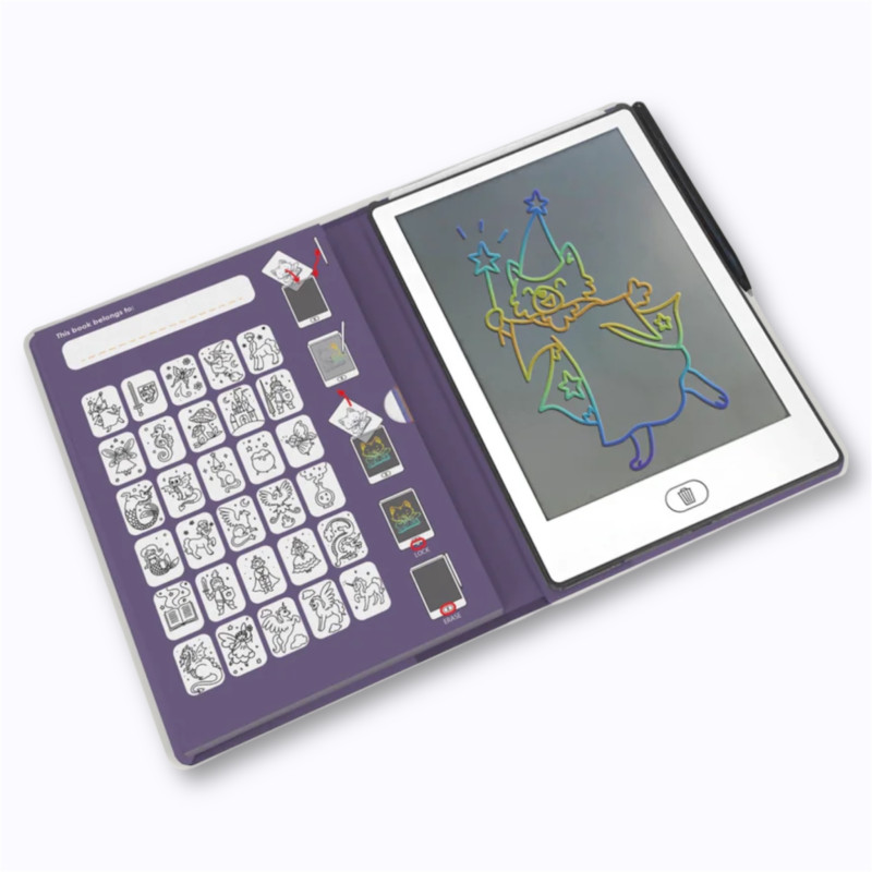 Cette tablette permet aux enfants de dessiner, écrire ou gribouiller à volonté grâce à un stylet intégré et une fonction d'effacement instantané. Ultra légère, elle se glisse facilement dans un sac ou une poche, et devient la compagne idéale des trajets, restaurants ou temps calmes.