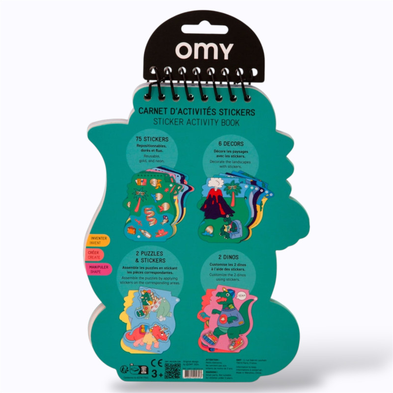 Le carnet d’activités sticker Dino – OMY est un cahier créatif souple mêlant autocollants repositionnables, coloriages et jeux sur le thème des dinosaures. Pensé pour les enfants dès 3 ans, il offre 44 pages de fun éducatif à emporter partout. Il complète à merveille d’autres carnets OMY et les feutres ultra lavables pour une activité propre et imaginative. À retrouver dans notre sélection de loisirs ludiques pour petits explorateurs.