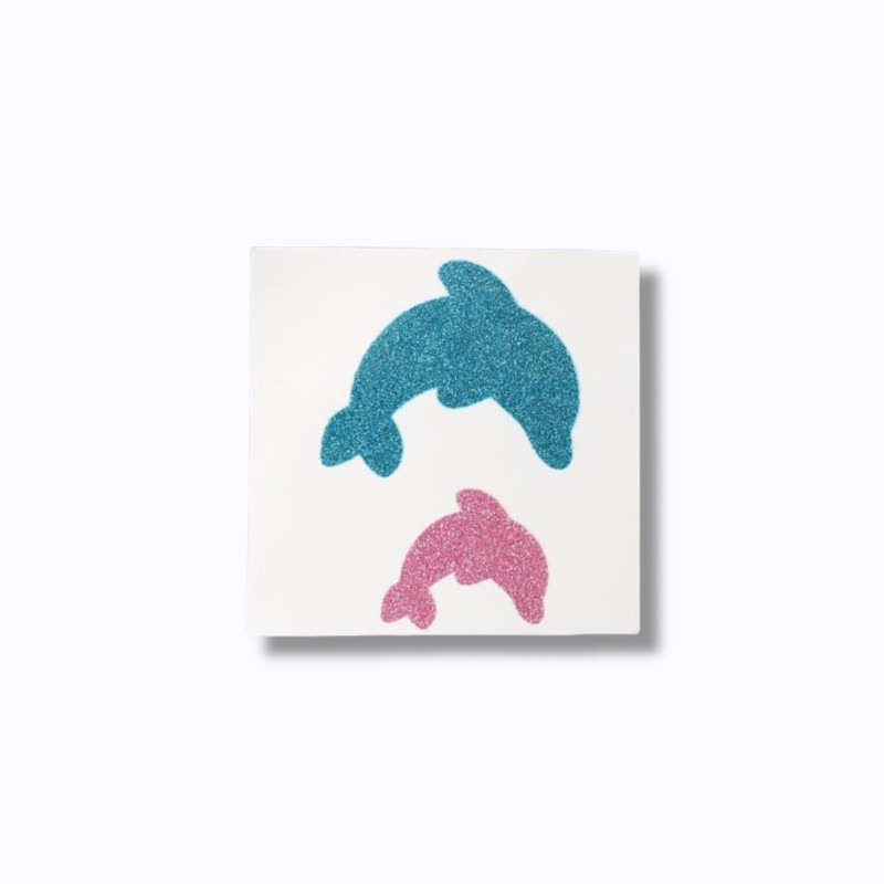 Chaque planche contient plusieurs dauphins aux couleurs tendres et aux détails scintillants. Leur application est simple : il suffit d’un peu d’eau et d’une peau propre pour que le motif se transfère en douceur. Une fois posés, ils tiennent plusieurs heures et se retirent sans difficulté avec de l’eau savonneuse.