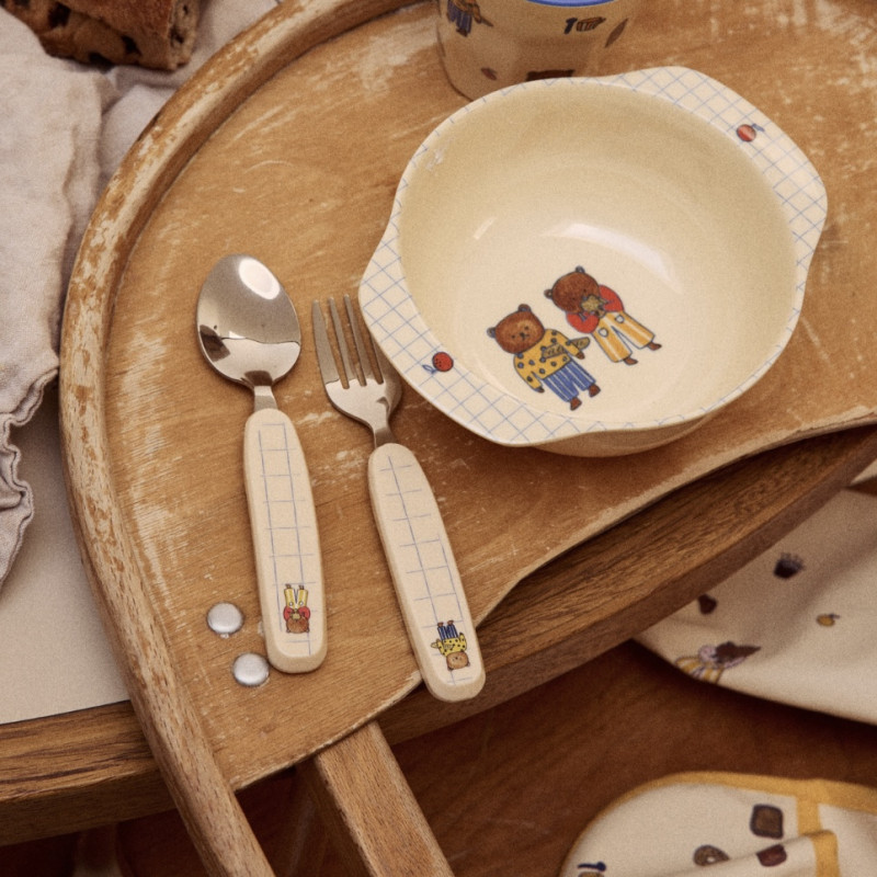 Le décor met en scène un ours tout doux sur fond crème, un motif tendre qui fait sourire à chaque gorgée.