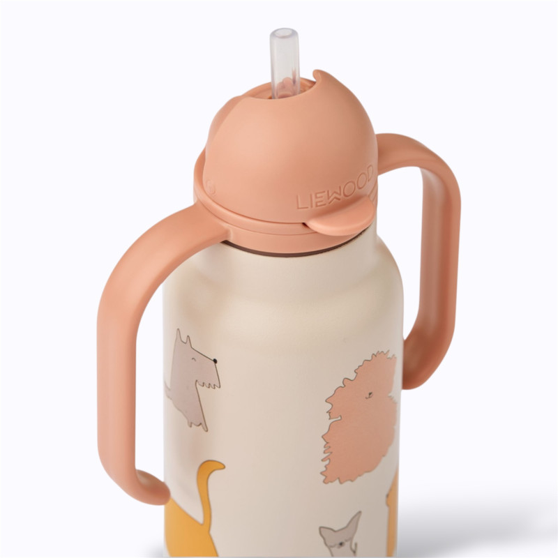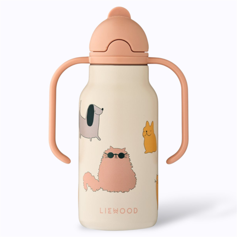 La bouteille KIMMIE Cats and Dogs – Liewood est une gourde compacte en inox de 250 ml. Elle garde les boissons fraîches ou chaudes des heures grâce à sa double paroi. Son bouchon sport avec paille est facile à utiliser dès 2 ans. À associer avec la version Arctic Sea et notre sélection gourdes enfant. À découvrir dans l’univers Liewood.