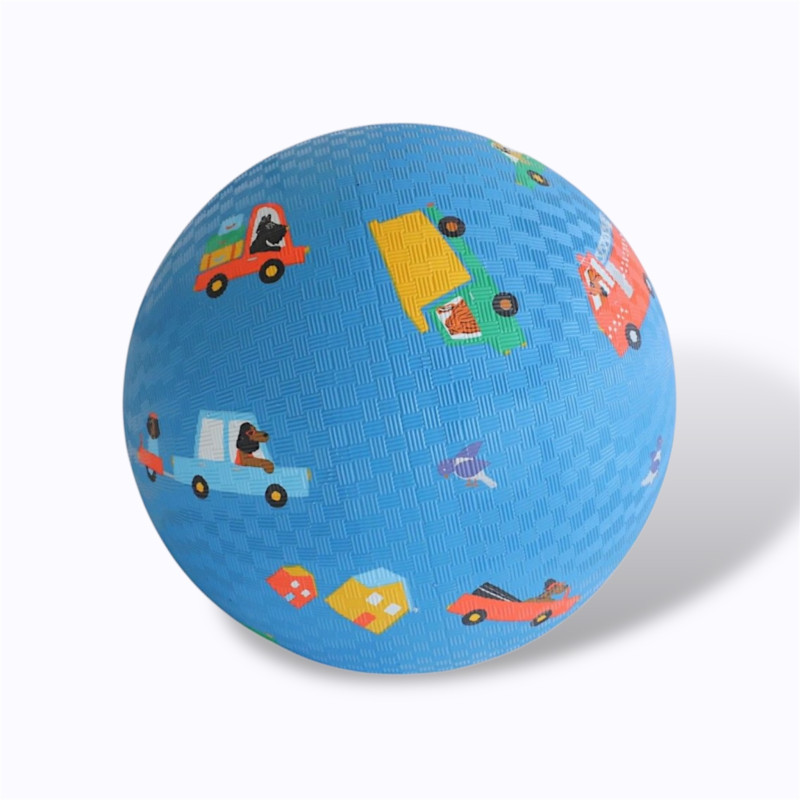 Fabriqué en plastique souple et résistant, ce ballon se gonfle facilement à la bouche ou avec une pompe. Son format léger permet aux petites mains de le saisir et de jouer sans difficulté, que ce soit en intérieur ou au jardin. Les dessins de camions, voitures et chiens apportent une touche joyeuse qui séduit les plus jeunes.