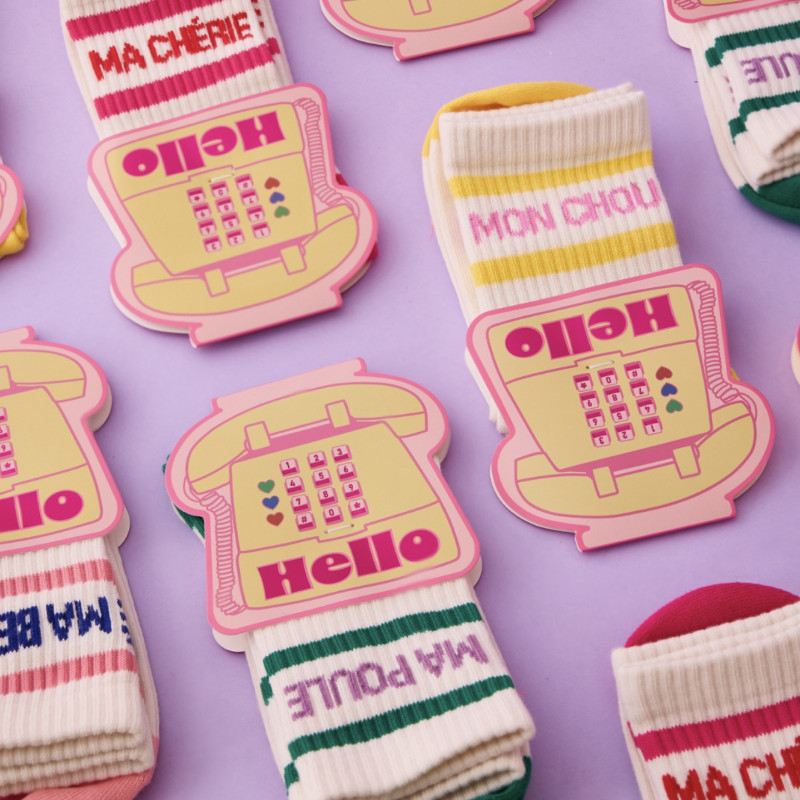 Les chaussettes "Ma Chérie" – Le Petit Souk apportent une dose de tendresse et d’humour au quotidien. Leur message délicat est parfait pour se faire plaisir ou offrir un petit clin d’œil complice.