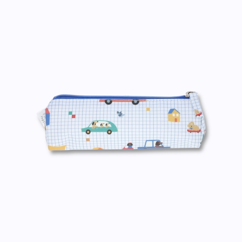 Fabriquée en coton enduit, cette trousse est résistante et facile à nettoyer. Son format rectangulaire est parfait pour accueillir crayons, feutres, petits jouets ou accessoires de toilette. La fermeture éclair solide permet de tout garder en sécurité, même dans un cartable un peu chargé.
