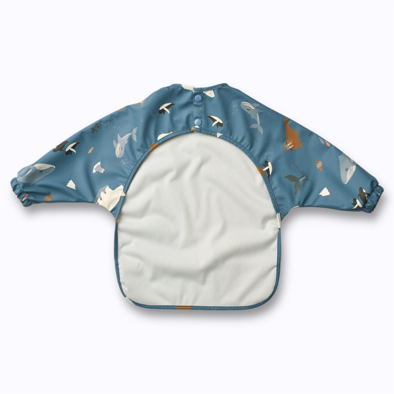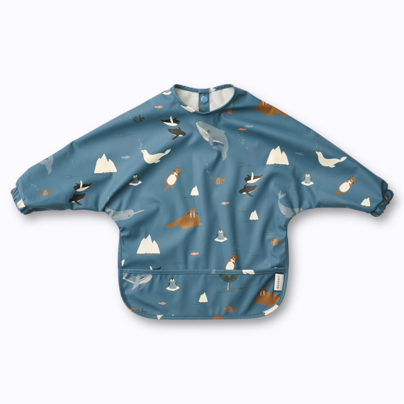 Le bavoir à manches longues Arctic Sea Liewood est pratique et imperméable. Conçu en polyester recyclé, il protège efficacement les vêtements des bébés lors des repas ou activités manuelles. Son motif marin et sa poche attrape-miettes apportent style et confort. À associer au bavoir Berry et à notre sélection bavoirs. Une idée cadeau écoresponsable et tendance, disponible chez Liewood et dans notre boutique.
