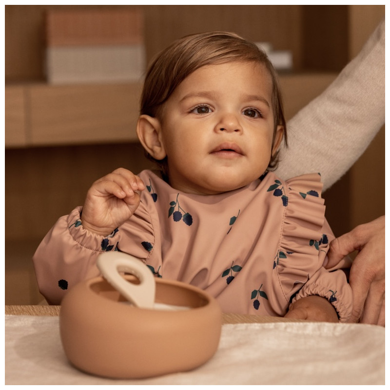 Avec ses teintes pastel “Tuscany rose” et “blue whale”, le bol crée une ambiance calme pour les repas. Les finitions lisses et les contours doux apportent une esthétique scandinave, fidèle à l’esprit Liewood. Il s’intègre harmonieusement dans un service coordonné avec la tasse d'apprentissage en silicone avec anses.