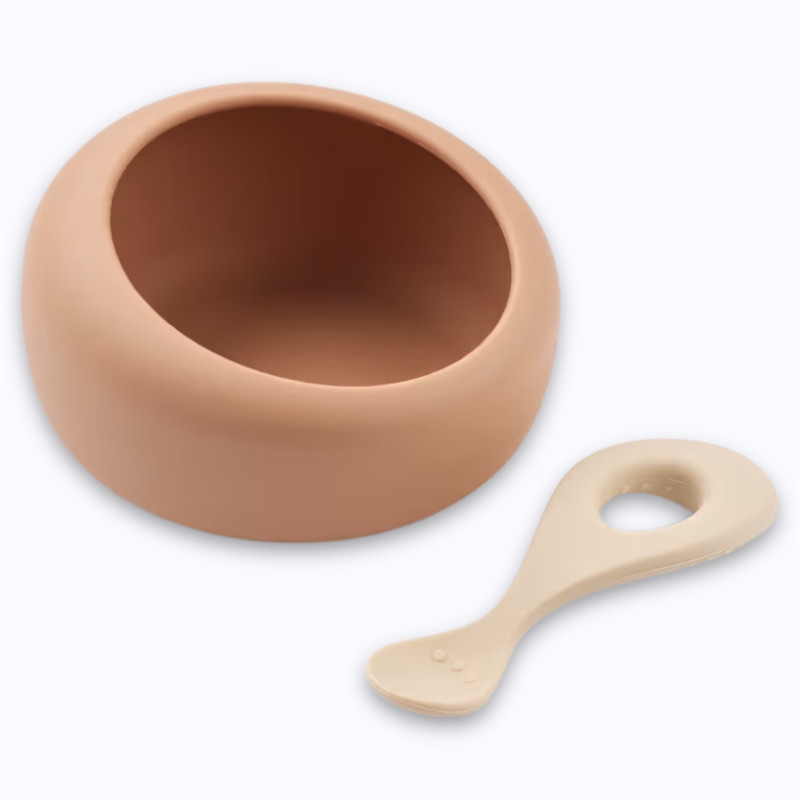 Ce bol est fabriqué en silicone alimentaire sans BPA, garantissant sécurité et durabilité. Sa base stable limite les renversements. La cuillère assortie se clipse sur le bord, toujours à portée. Le bol est léger et flexible, adapté aux petites mains en pleine prise en main. Sa capacité de 200 ml convient aux purées, compotes et snacks.