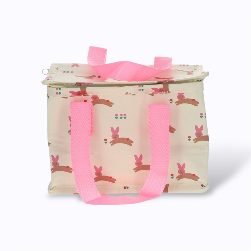 Conçu en toile résistante, ce lunch bag est idéal pour accompagner les enfants à l’école, en pique-nique ou en sortie. Sa fermeture pratique et ses anses adaptées aux petites mains en font un allié du quotidien. L’intérieur peut accueillir facilement une petite boîte repas, une boisson et quelques encas. Son motif de lapin rose apporte une touche mignonne qui séduit aussi bien les enfants que leurs parents.