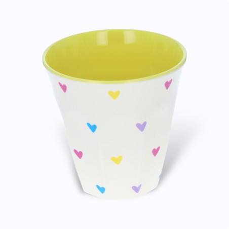 Le grand verre multicoeurs jaune de Le Petit Souk met de la joie dans chaque repas. Avec sa teinte solaire et ses cœurs multicolores, il devient vite le préféré des petits rêveurs. Pratique, résistant et plein de charme, il accompagne les goûters, les brunchs et les pique-niques avec style. Une touche de bonne humeur à table, pour boire son lait ou son jus préféré avec un grand sourire et beaucoup d’amour.