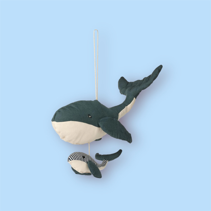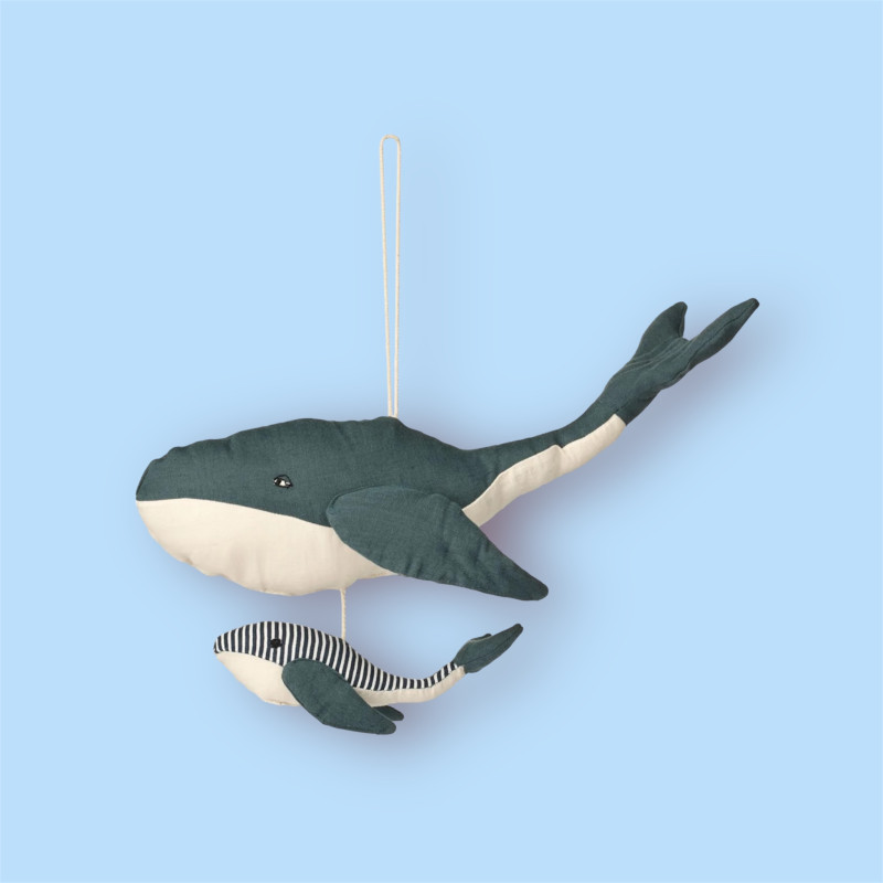 Le mobile Blue Whale de Liewood est un charmant accessoire décoratif destiné à enrichir l'atmosphère de la chambre d'enfant. Ce mobile captivant se distingue par son design apaisant, mettant en scène une adorable baleine bleue accompagnée de son petit. Conçu pour attirer l'attention des tout-petits, il crée un environnement calme et réconfortant, idéal pour favoriser leur sommeil ou leur relaxation.