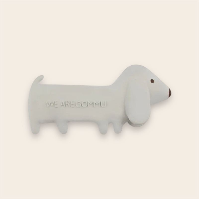Le Mini Dog Ocean de la marque We Are Gommu est un jouet de dentition en forme de petit chien, conçu pour accompagner les tout-petits dès la naissance dans leur découverte sensorielle. Fabriqué à la main en Espagne, il est confectionné à partir de caoutchouc naturel, issu de la sève blanche d’hévéa. Sa composition 100 % biodégradable reflète l'engagement de la marque pour des jouets écologiques et durables.