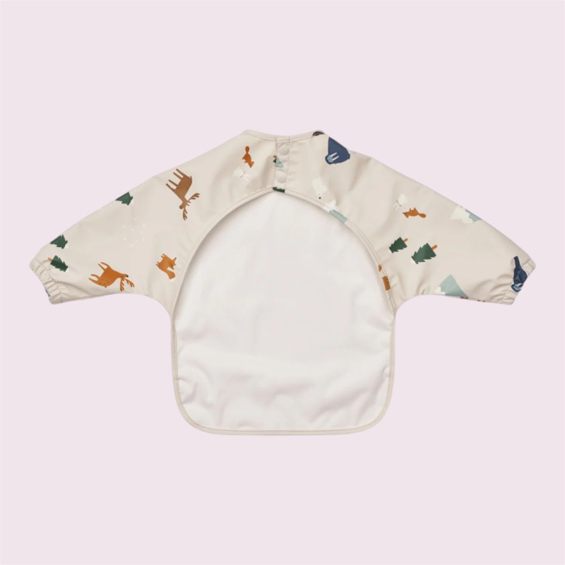 Alternez les styles en découvrant le bavoir à manches longues Holiday – Liewood, aux motifs festifs parfaits pour égayer les repas.