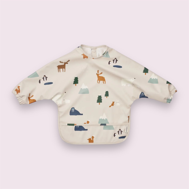 Protégez les vêtements de votre enfant avec le bavoir à manches longues Merle "Polar" de Liewood. Pensé pour les repas et les activités créatives, il combine fonctionnalité et charme hivernal.