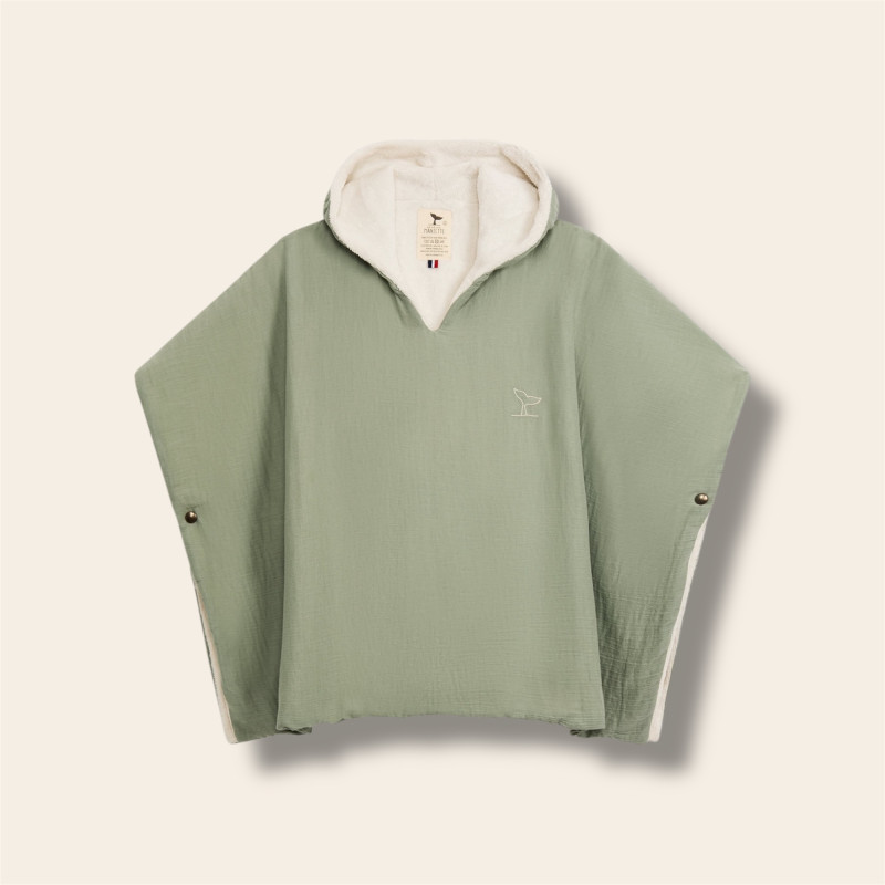 Le poncho SANCHO – Atelier Maniette, c’est tout ce qu’il faut pour des sorties de bain réussies : ultra doux, facile à enfiler et fabriqué en France, il garde votre enfant au chaud et au sec avec style. On craque pour sa capuche pratique, son design baleine et ses coloris tendance (vert sauge, rose, ivoire ou bleu orage).