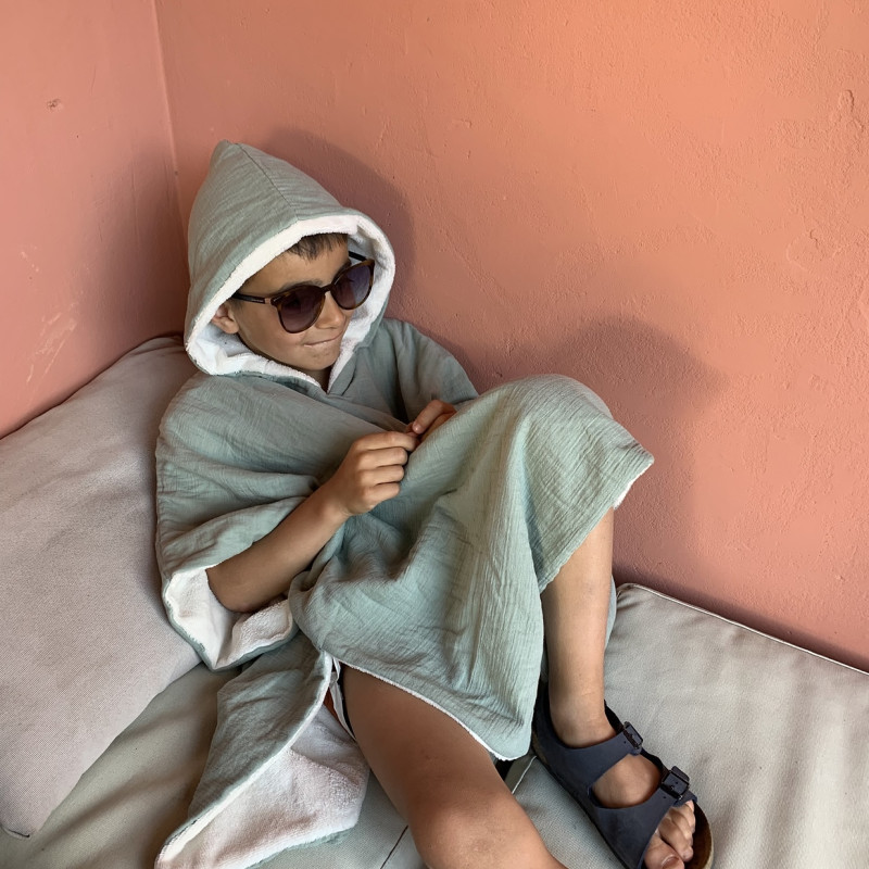 SANCHO, c’est le poncho des cool kids qui aiment la plage mais pas les frissons après le plongeon ! Imaginé avec amour par Atelier Maniette, ce poncho à capuche ultra pratique deviendra le meilleur allié de votre enfant tout l’été.