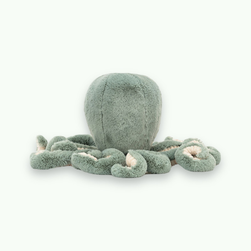 L’Odyssey Octopus de Jellycat est une peluche pleine de charme, conçue pour être le compagnon idéal des tout-petits. Avec son look de calamar aux teintes vert cendré et son dessous en velours côtelé crème, cette peluche offre à la fois un aspect visuel élégant et un toucher varié, parfait pour éveiller la curiosité sensorielle des enfants.
