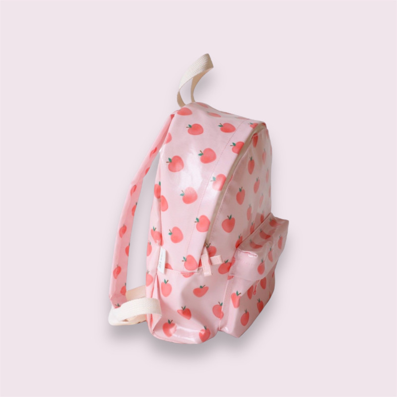 Les enfants adorent avoir leur propre sac à dos, car cela leur permet de se sentir plus grands et autonomes. Avec ce modèle, non seulement ils peuvent ranger leurs affaires eux-mêmes, mais ils le feront avec style ! Le motif pommes, doux et coloré, apporte une touche fruitée et ludique qui plaira aux plus petits, tandis que le coton enduit offre une durabilité et une protection contre les petites taches.