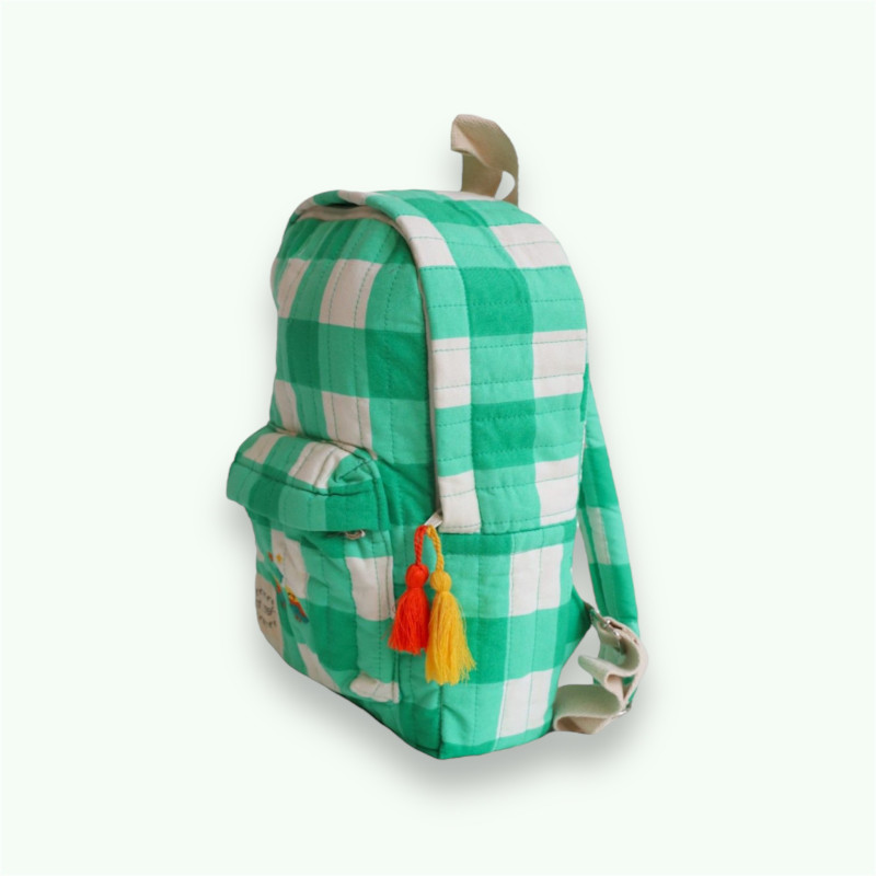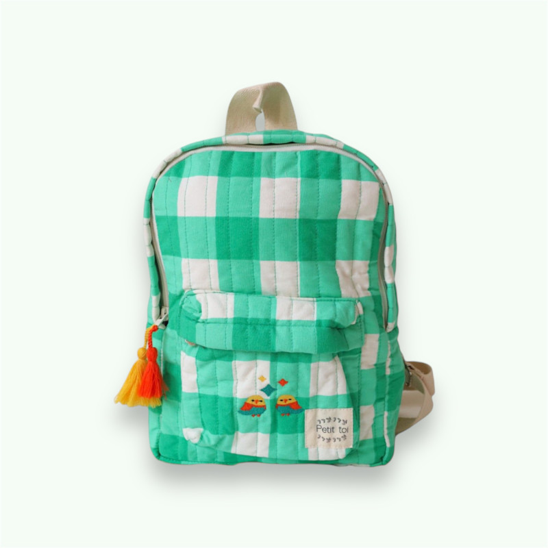 Offrez à votre enfant un petit goût d’aventure avec le Sac à dos - Les Inséparables de Le Petit Souk. Ce charmant sac à dos en popeline de coton rayée aux couleurs printanières est parfait pour les petits explorateurs. Avec ses grandes rayures vertes et son adorable motif Inséparables brodé, ce sac fera fondre le cœur de tous. Ses anses réglables et rembourrées assurent un confort optimal pour les petites épaules, tandis que la petite poche avant est idéale pour ranger ses trésors. Pratique pour la crèche, la maternelle ou les balades, il permet à votre enfant d’apprendre l’autonomie tout en s’amusant. Un indispensable à glisser partout !