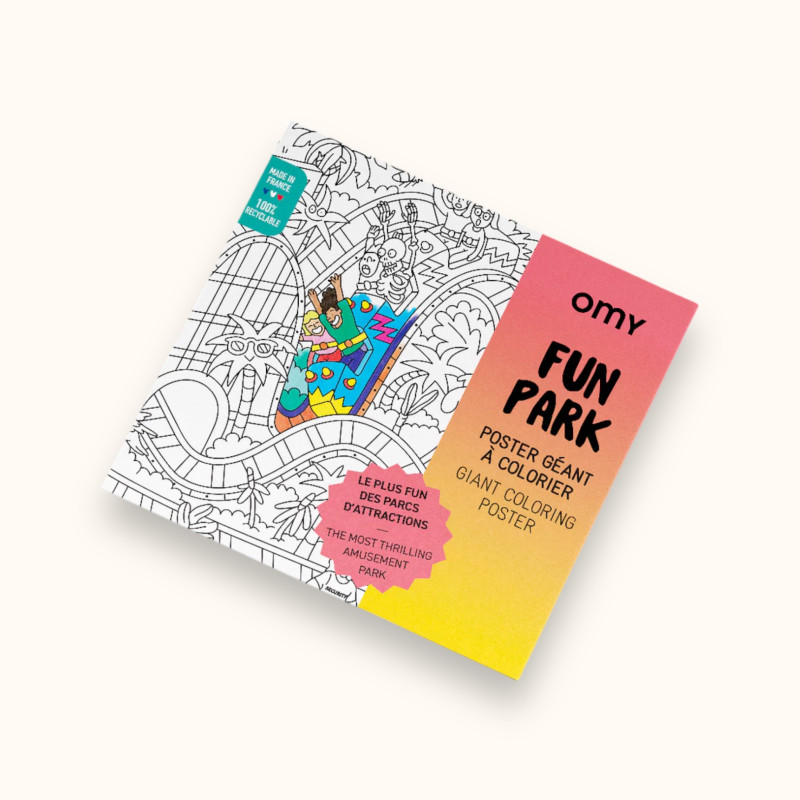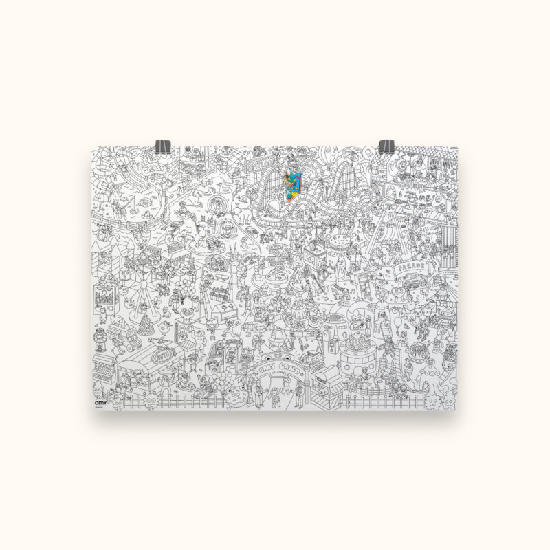 Le poster à colorier Fun Park d'OMY transporte petits et grands dans le monde merveilleux de la fête foraine. Grande roue, voitures tamponneuses, montagnes russes, barbes à papa… un univers ludique rempli de détails humoristiques. À colorier seul ou à plusieurs, ce poster est un espace créatif sans limites.