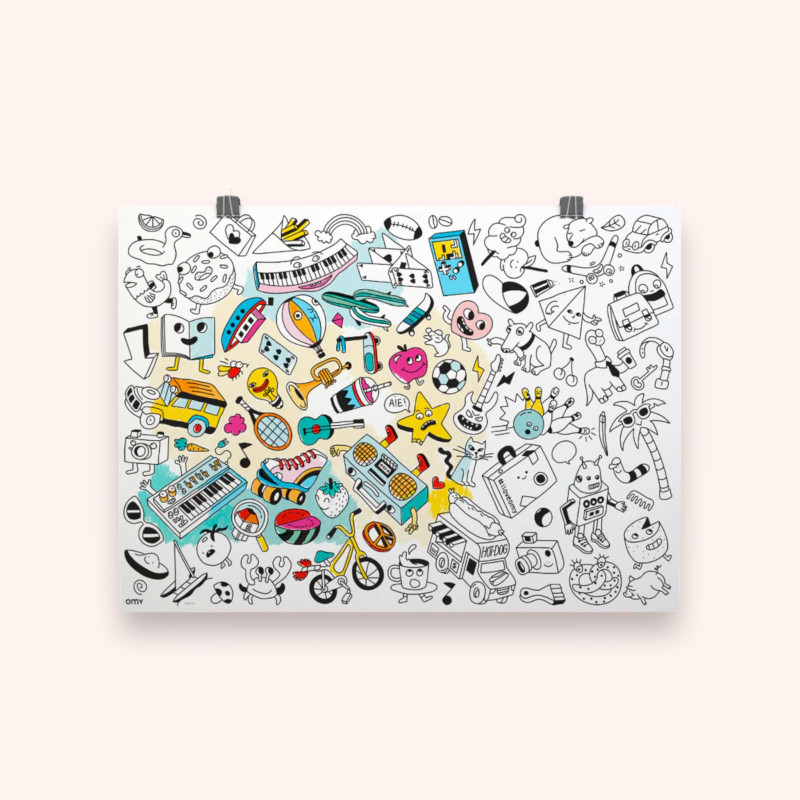 Le poster à colorier Pop Art d'OMY est une œuvre fun et graphique, conçue pour éveiller la créativité des tout-petits. Plié dans une belle pochette colorée, il offre un espace de coloriage infini, à partager en famille. Avec son style décalé et humoristique, ce poster est parfait pour colorier seul ou en groupe.