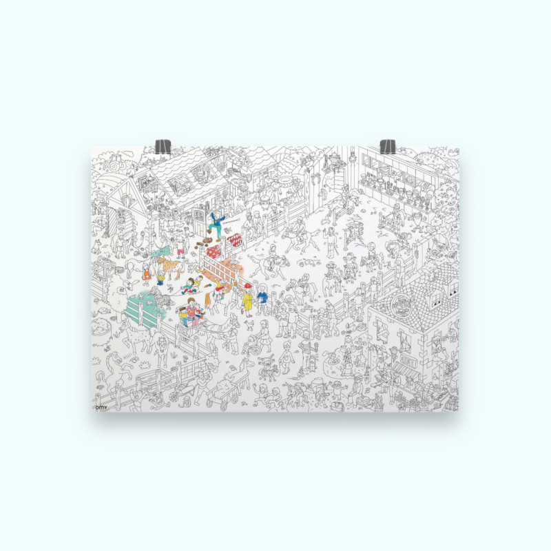 Avec un format généreux de 70 x 100 cm, ce poster offre une multitude de détails à colorier, accompagnés de l'humour décalé caractéristique d'OMY. C'est un véritable espace artistique sans limites, parfait pour jouer et colorier seul ou à plusieurs. Que ce soit sur le sol, une table ou accroché au mur, il trouvera sa place dans n'importe quel coin créatif.