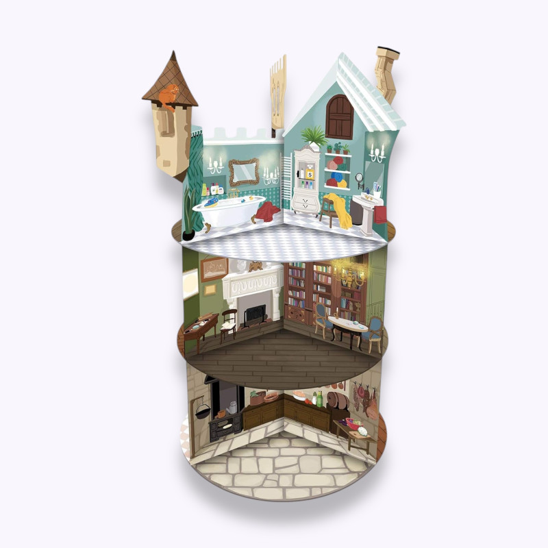 Le jeu est conçu pour plonger les enfants dans un univers captivant grâce à son plateau-château en 3D. Il inclut également des accessoires de détective, tels qu'une loupe, un miroir et un filtre rouge, indispensables pour décoder les énigmes et vérifier les réponses au dos des cartes. Un carnet de détective aide à suivre la progression, tandis qu'un pion Max & Enzo guide les joueurs à travers les différentes salles.