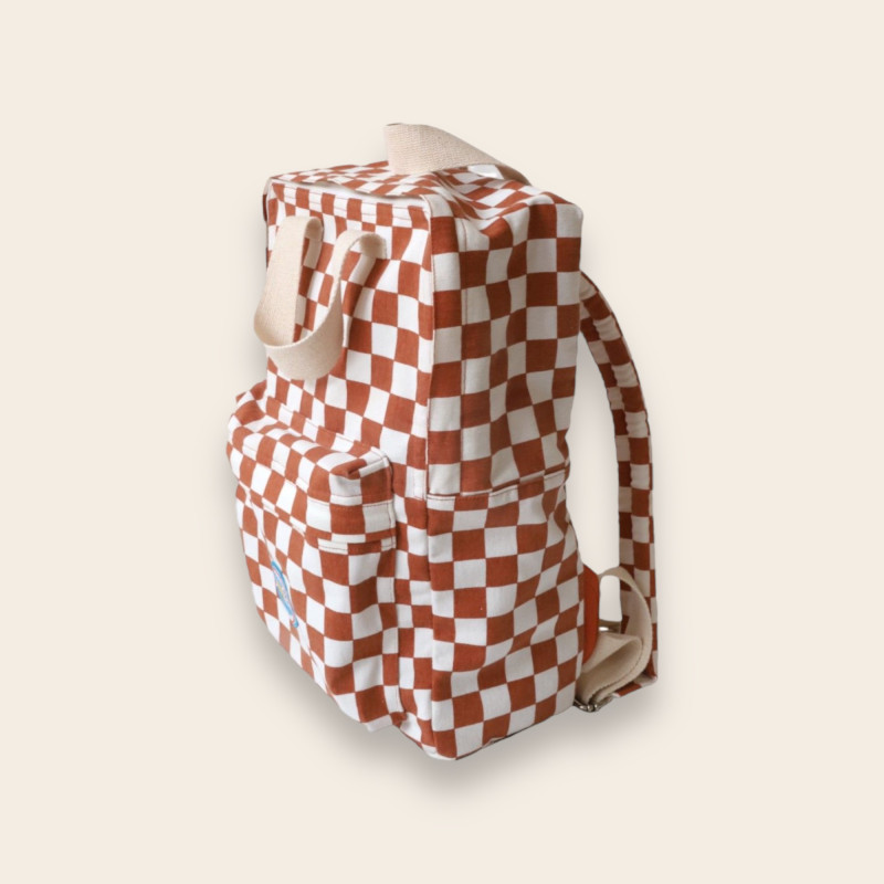 Le sac à dos enfant double poignées damier - Skate park de Le Petit Souk est un compagnon de choix pour les jeunes aventuriers et les amateurs de skate. Conçu en coton résistant et agréable au toucher, il est parfait pour accompagner votre enfant tout au long de ses journées, que ce soit à l'école, lors de sorties ou en jouant chez des amis.